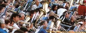 Kuhlo und Wilhelm Ehmann. Wie sieht und hört sich die Arbeit eines Posaunenchors an? Wie überall hat sich auch in den Posaunenchören in den letzten Jahrzehnten einiges verändert. Das veränderte Instrumentarium - u. a. Trompeten statt Flügelhörner - wurde bereits erwähnt. In der Literatur gibt es mittlerweile Bearbeitungen für Posaunenchöre aus fast allen Bereichen der Musik. Spirituals, Gospels (geistliche Lieder aus Amerika), Bearbeitungen zu neuen Liedern des Gesangbuches sind in den letzten 5-10 Jahren in großer Anzahl für die Posaunenchöre erschienen. Das heißt, stilistisch gibt es eine musikalische Breite wie noch nie, was von den ausführenden Bläserinnen und Bläsern wiederum ganz unterschiedliche Fähigkeiten auf ihren Instrumenten abverlangt. Ein Stück von Bach klingt anders wie eines von Mendelssohn oder wie ein Spiritual aus Amerika. Entsprechend muß es auch verschieden gespielt werden. Dazu braucht es unterschiedliche Spieltechniken, die erst gelernt werden müssen. Damit sind wir beim Spielen eines Blechblasinstruments angelangt. Um ein solches Instrument zu beherrschen, ist es Voraussetzung, sich zuerst einmal die musikalischen und bläserischen Fähigkeiten anzueignen, den dann erreichten Stand zu halten und möglichst weiter auszubauen. Das bedeutet, eine regelmäßige Beschäftigung mit dem Instrument ist notwendig, soll es auch für die Zuhörer gut klingen. Tägliches Üben, Besuch von Lehrgängen gehören dazu, bis ein Jungbläser nach 3-4 Jahren die Literatur im großen Chor mitspielen kann. Es bedarf demnach sehr viel Fleiß, Zeit, Ausdauer und Motivation für einen Jungbläser - und für seine Eltern! - bis er dieses bläserische Niveau erreicht hat. Die verschiedenen Stilrichtungen spielen zu können, macht andererseits auch viel Freude. Zum Teil geschieht dies in Sondergruppen des Posaunenchors, beispielsweise in den Jungbläsergruppen, im "Kleinen Chor" oder im Posaunenquartett. Aus der Vielfalt der Musikrichtungen und Sondergruppen ergeben sich die unterschiedlichen Arbeits- und Einsatzmöglichkeiten des Chores. |